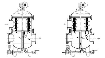 | 正常过滤状态 滤芯反冲洗状态 HD-DL III型反冲洗式自洁式过滤器 |