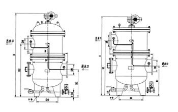 HD-DLⅢ型反冲洗式自洁式过滤器由壳体、多元滤芯、反冲洗机构、电控箱、减速机、电动阀门和差压控制器等部分组成。壳体内的横隔板将其内腔分为上、下两腔,上腔内配有多个过滤芯,这样充分利用了过滤空间,显著缩小了过滤器的体积,下腔内安装有反冲洗吸盘。工作时,浊液经入口进入过滤器下腔,又经隔板孔进入滤芯的内腔。大于过滤芯缝隙的杂质被截留,净液穿过缝隙到达上腔,最后从出口送出。