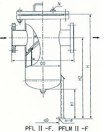(4)篮式法兰连接直通封头式过滤器(PFL II—F型) (PN≤5.OMPa DN200—500) (5)篮式法兰连接直通封头式过滤器(PFLM 11—F型) (PN≤5.OMPa DN200~500) PFLII-F,PFLMH-F型
