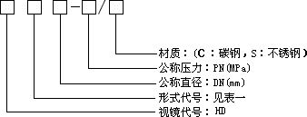例:HDⅠ40-2.5/S。LG视镜,类型代号为